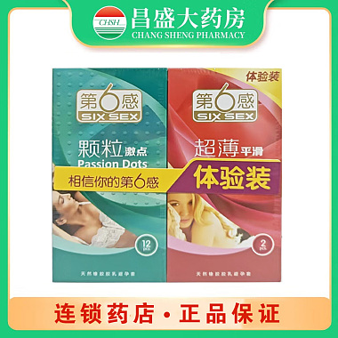 第6感 天然橡胶胶乳避孕套 12只装(颗粒激点)+2只装(超薄平滑)W52 天津中生乳胶有限公司