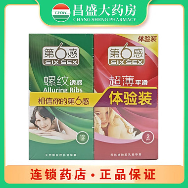 第6感 天然橡胶胶乳避孕套 12只装(螺纹诱惑)+2只装(超薄平滑)W52 天津中生乳胶有限公司